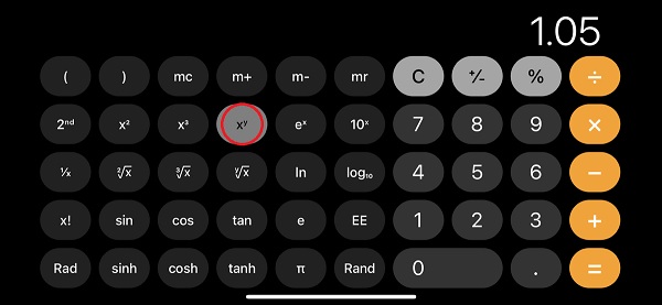 複利運用で得られる効果は、iPhoneの電卓機能でも簡単に計算できます。iPhoneに搭載されている電卓アプリは、画面を横向きにすることで関数計算ができるようになります。