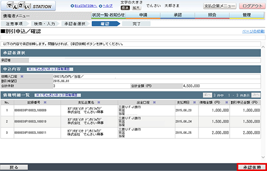 STEP.4内容を確認し、「承認依頼」をクリックします。