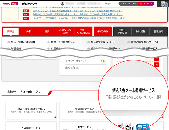 振込入金メール通知サービスはBizSTATIONの追加サービスです。