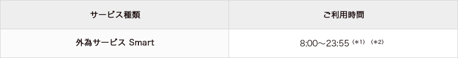 | 外為サービス Smart | 8:00~23:55(*1)(*2) |