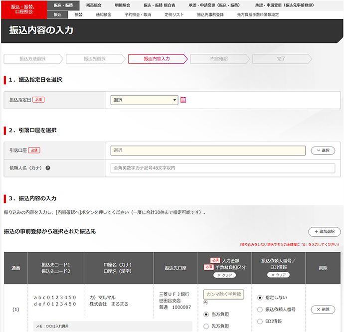 - 1回の操作でまとめて30件までの即時振込