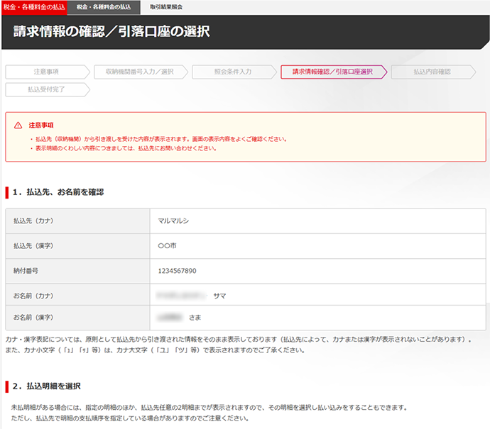 (税金・各種料金の払込)