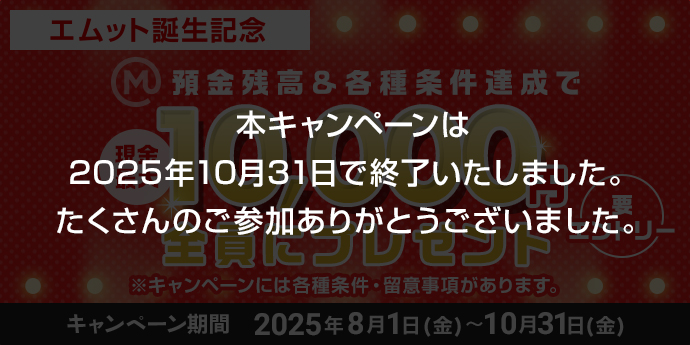 口座をひらく 【アプリ限定】初めての口座開設&15万円以上の残高でもれなく現金3万円プレゼント! 口座開設期間:2026年1月7日(水)~3月31日(火) くわしくはこちら お金をためる・ふやす NISA応援プランで現金最大3,000円プレゼント! くわしくはこちら 便利につかう 三菱UFJカード おトクなご入会特典あり! くわしくはこちら 便利につかう 【三菱UFJデビット】Apple PayのPASMOにチャージ・定期券購入でAmazonギフトカードもれなくプレゼント! <キャンペーン期間>2026年3月2日(月)~4月30日(木) くわしくはこちら 口座をひらく 「今日、好きになりました。春のミーグリ祭 2026 supported by 三菱UFJ銀行」開催決定!特別チケットが当たるキャンペーン実施中! 【口座開設期間】3月ミーグリ:2026年1月8日(木)~2月2日(月)GWミーグリ:2026年1月8日(木)~3月31日(火) くわしくはこちら 便利につかう COIN+への初回チャージで最大5,000円相当もらえる!キャンペーン くわしくはこちら お金をためる・ふやす 【三菱UFJ銀行 エクセレント倶楽部】 退職金円定期金利優遇プラン実施中! 期間:2025年10月1日(水)~2026年3月31日(火) くわしくはこちら 口座をひらく 【アプリ限定】0~1歳のお子さま口座開設でディズニー・デザインマルチケースプレゼント! 期間:2025年3月10日(月)~※本プレゼントは予告なく内容を変更・終了する場合がございます くわしくはこちら 口座をひらく 紹介しても紹介されても現金1,500円がもらえる!三菱UFJ銀行 口座紹介プラン 期間:2025年1月8日(水)~※本プランは予告なく内容を変更・終了する場合がございます くわしくはこちら お金をためる・ふやす 外貨定期優遇プラン実施中! 期間:2026年1月5日(月)~2026年3月31日(火) くわしくはこちら 便利につかう 【三菱UFJデビット】新規入会&ご利用で1,000円もれなくプレゼント! くわしくはこちら 口座をひらく メインバンク プラス ポイントサービスに申し込むと、取引に応じてポイントたまる! ※ポイント加算には条件があります。 くわしくはこちら お金をためる・ふやす 三菱UFJeスマート証券口座開設キャンペーン実施中! くわしくはこちら 口座をひらく 2026ワールドベースボールクラシック™応援キャンペーン実施中!抽選で80組160名さまにWBC観戦ペアチケットが当たる! 口座開設期間:2026年1月19日(月)~2月12日(木)入金・エントリー期間:2026年1月19日(月)~2月16日(月) くわしくはこちら 便利につかう 三菱UFJカードご入会+預金残高で現金最大20,000円プレゼントキャンペーン 期間:2025年12月15日(月)~2026年3月31日(火) くわしくはこちら 便利につかう MUFGサービスとつながって便利に!キャンペーン実施中 くわしくはこちら