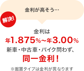 - 本審査時やお借入後に、車検証等の提出をお願いする場合がございます。