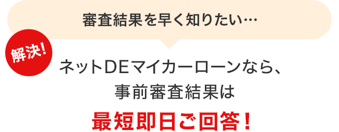 事前審査結果は、最短即日(*1)ご回答本番審査結果は最短翌々営業日(*1)にご連絡 -
