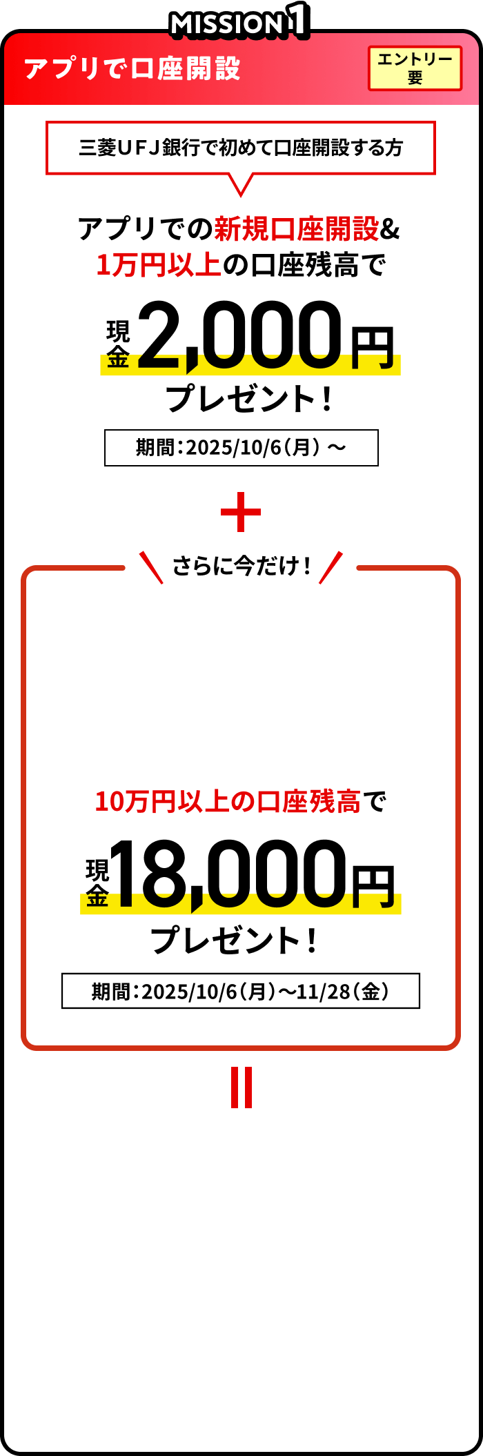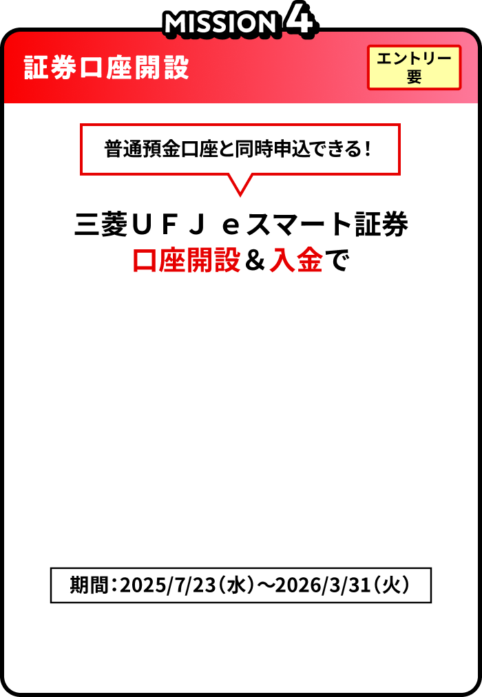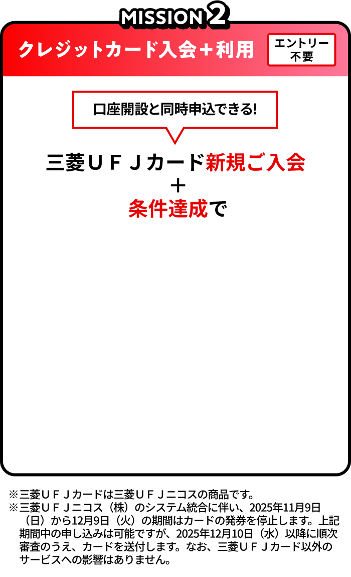 ※新規口座開設の場合は同時にお申し込みとなります。三菱UFJカードには申込資格があります。新規ご入会には所定の審査がございます。