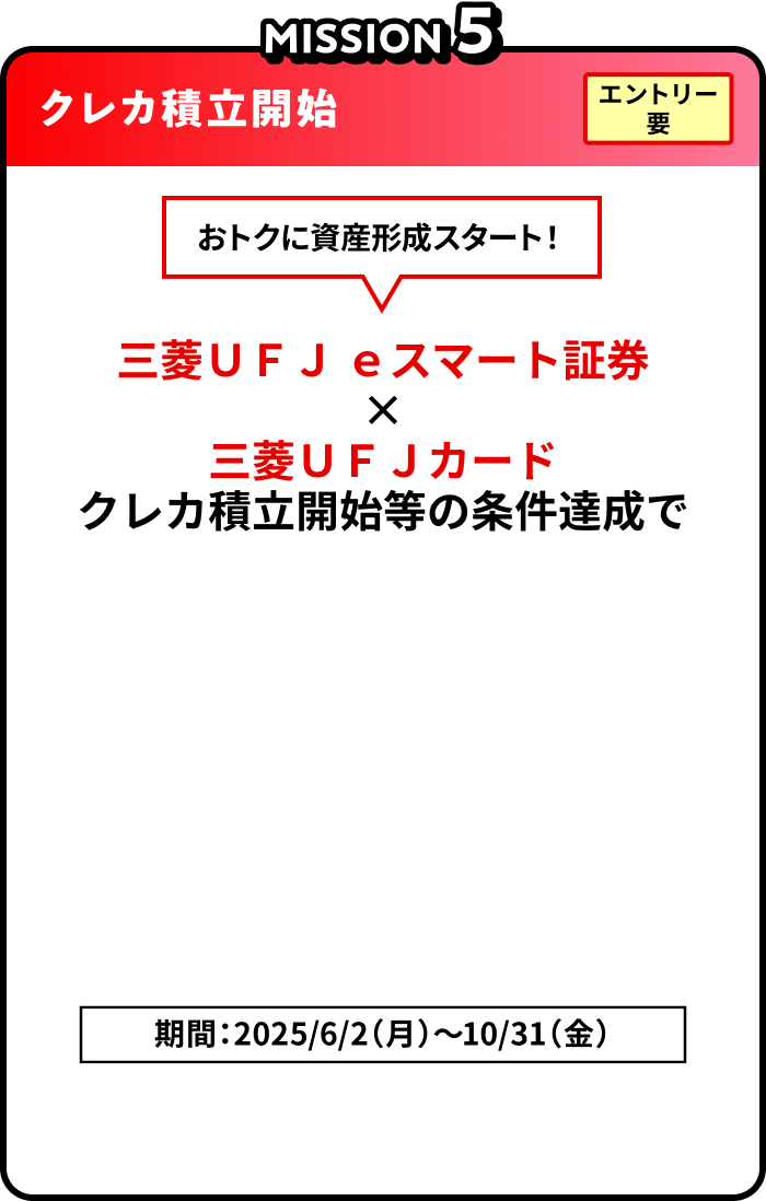 - 法令上の規制その他の事由により、三菱UFJニコス(株)が同時期に実施するキャンペーンなどとの特典を重複して提供できない場合があります。