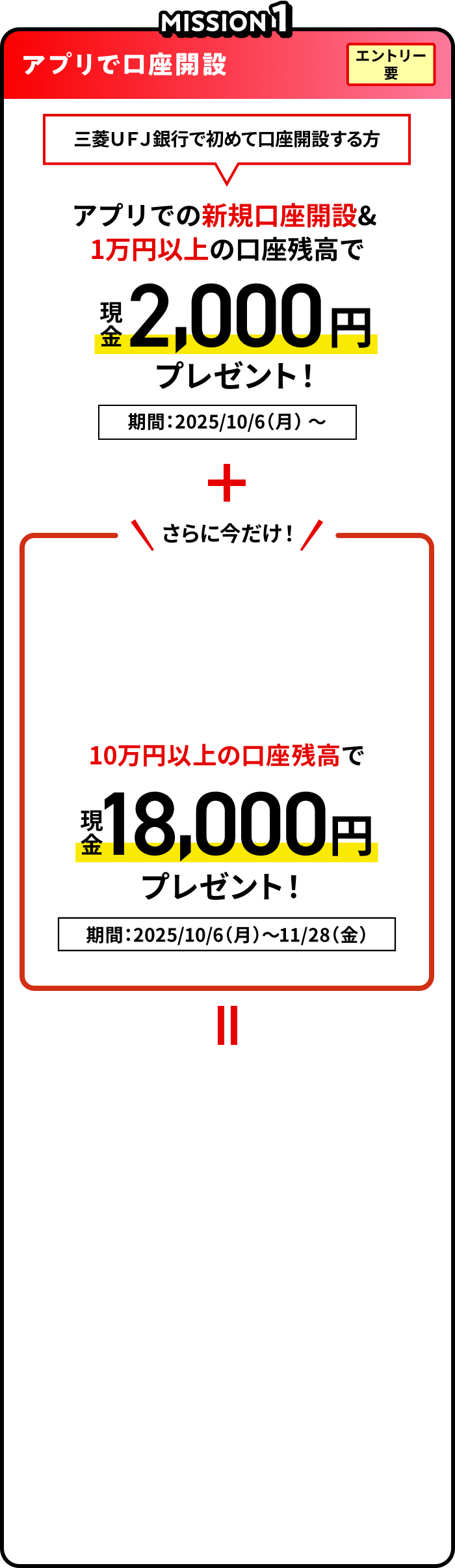 ※新規口座開設の場合は同時にお申し込みとなります。三菱UFJカードには申込資格があります。新規ご入会には所定の審査がございます。