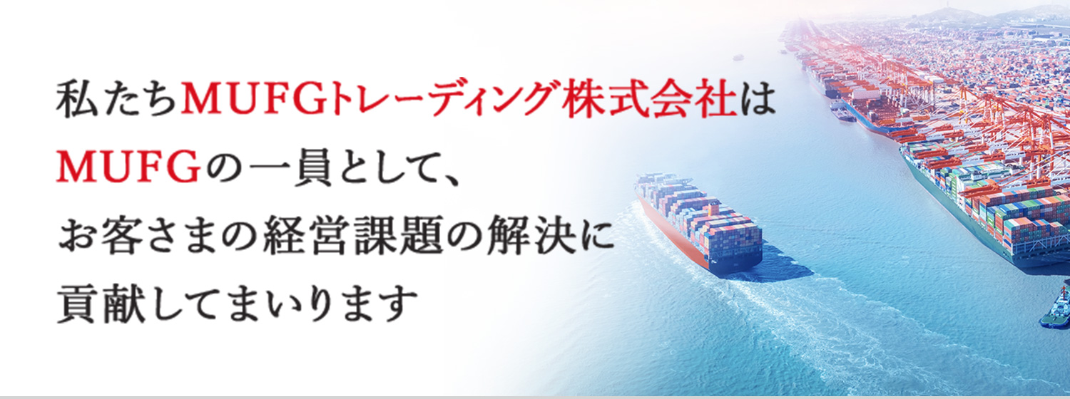 MUFGトレーディングは、MUFGグループの一員として、お客さまの商品や原材料の購入および販売を通じた新しいサプライチェーン構築支援のサービスを提供することで、お客さまの経営課題の解決に貢献してまいります。