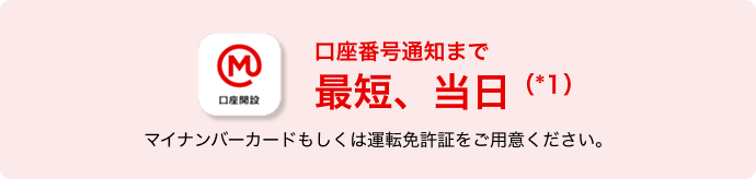 - 「スマート口座開設」以外のアプリから口座開設された場合、口座番号はキャッシュカードでご確認ください(アプリでは確認できません)。