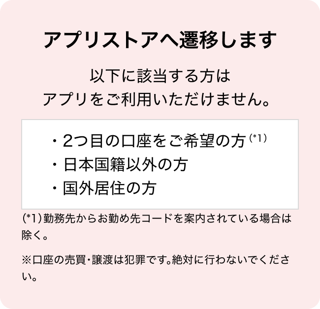 - 旧東京三菱銀行、旧UFJ銀行などの口座をお持ちの方も、ご利用いただけません。