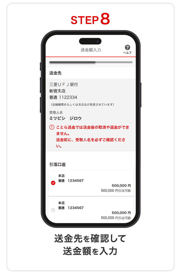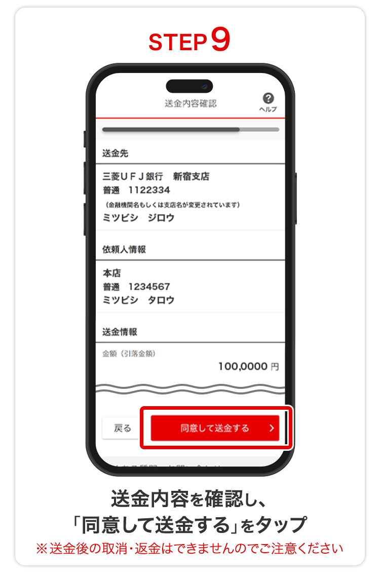 | 送金の取り消し | 送金の取り消しはできません。 相手の送金先情報を必ず確認してから送金してください。 |