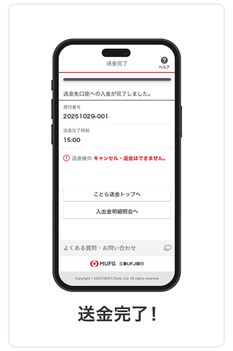 - 法人のお客さまはご利用いただけません。また、送金取消・返金はできません。