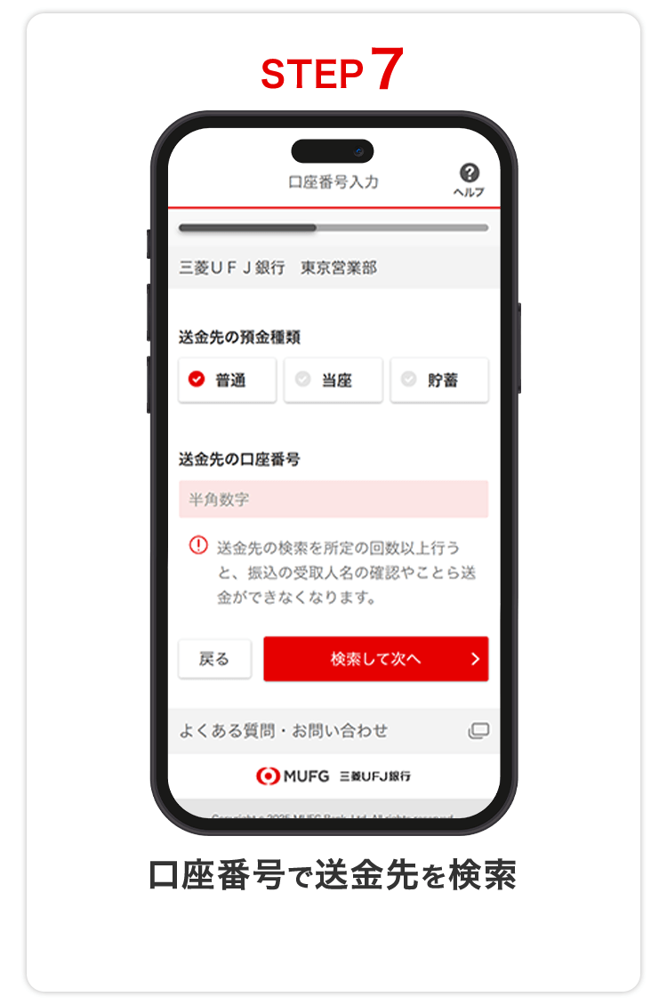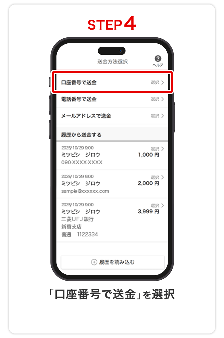 口座番号で送金する