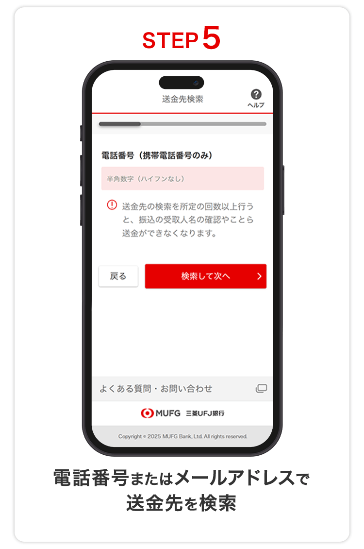 - 携帯電話番号・メールアドレスあて送金の場合。