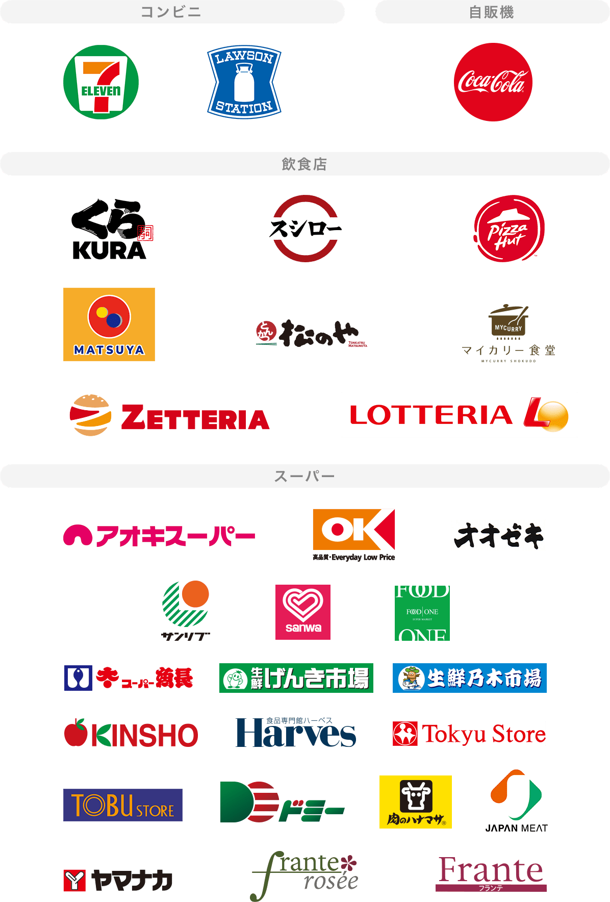 コンビニ、飲食店、スーパーなど対象店舗のご利用分が