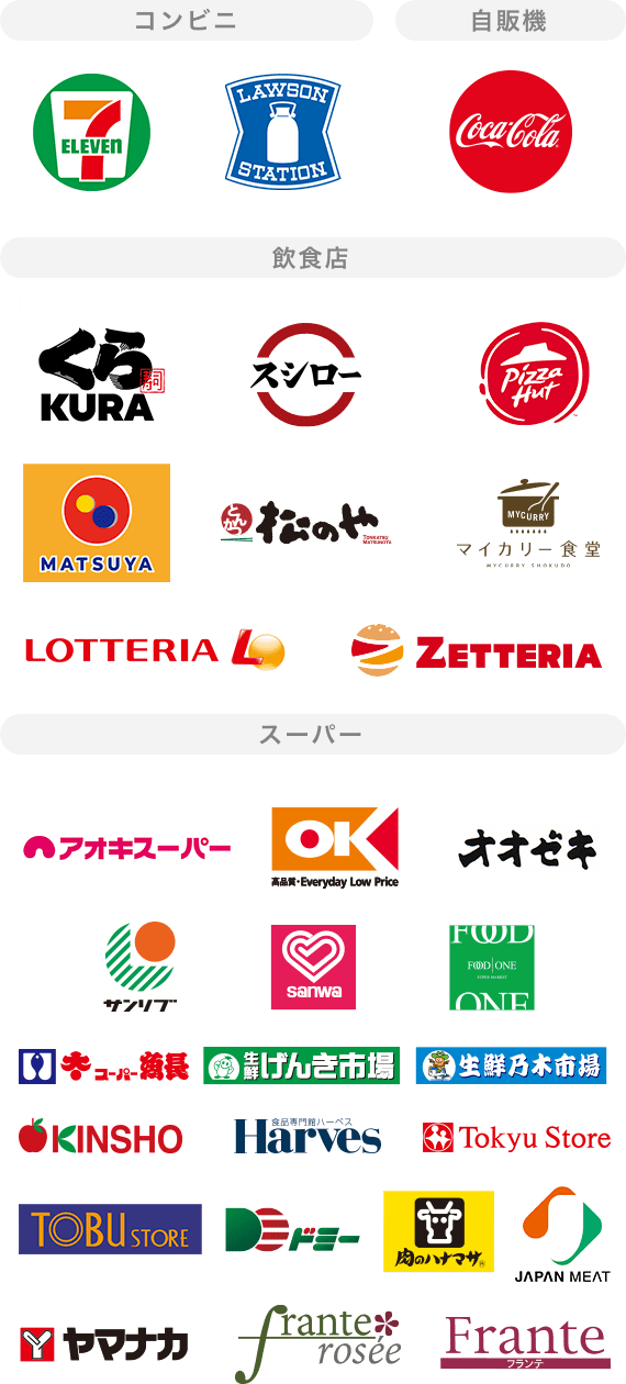 - ・食品スーパー以外のご利用は対象外となります。
