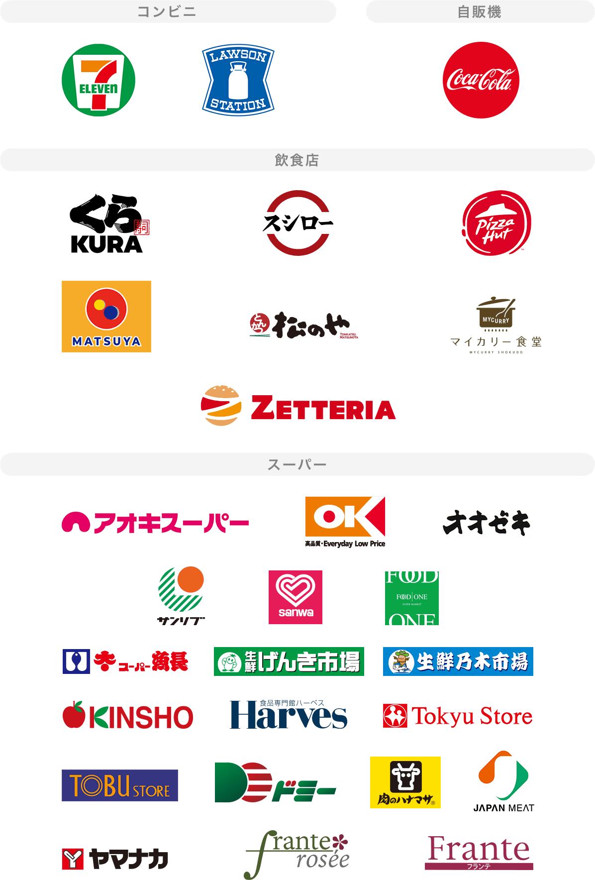 コンビニ、飲食店、スーパーなど対象店舗のご利用分が