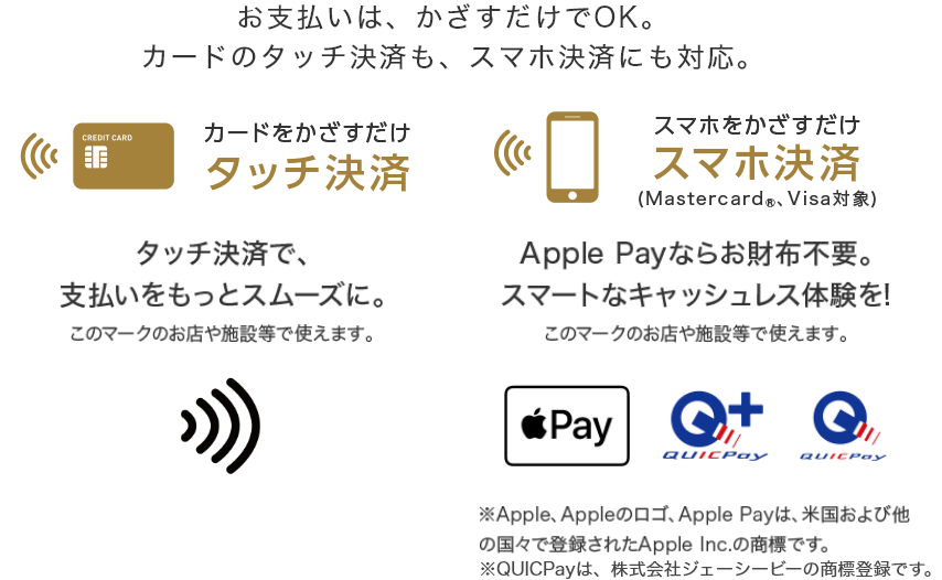 - QUICPayは、株式会社ジェーシービーの登録商標です。