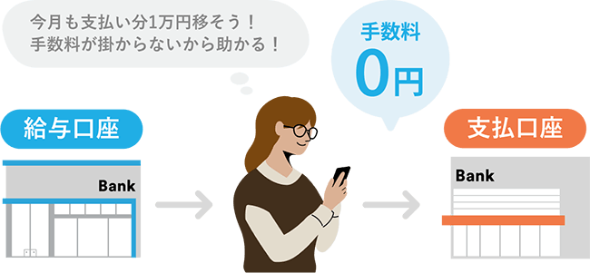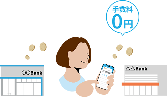 ご自身の銀行口座間のお金の移動や、家族・友人間の送金が何度でも手数料無料!