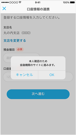 「口座登録と本人確認へ進む」を選択し、画面の案内にしたがって進めます。