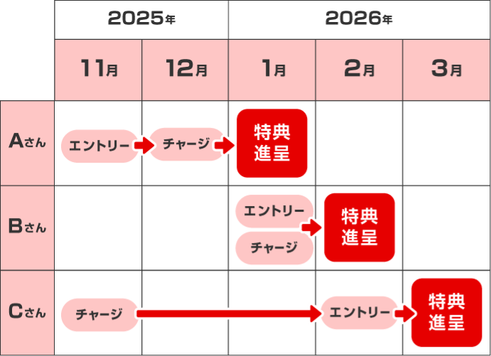 (11月にチャージ条件、2月にエントリー条件を達成)